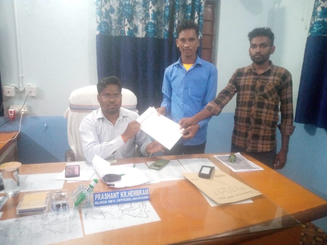 नावाडीह प्रखंड में सोमवार को आदिवासी जुमिद सरना धोरोम गाड़ समिति द्वारा बीडीओ प्रशांत कुमार हेंब्रम को मुख्यमंत्री हेमंत सोरेन के नाम एक ज्ञापन सौंपा गया. यह ज्ञापन डुमरी विधानसभा अध्यक्ष लालू मुर्मू के नेतृत्व में सौंपा गया, जिसमें आदिवासी गुरुओं को सम्मान राशि देने की मांग की गई.