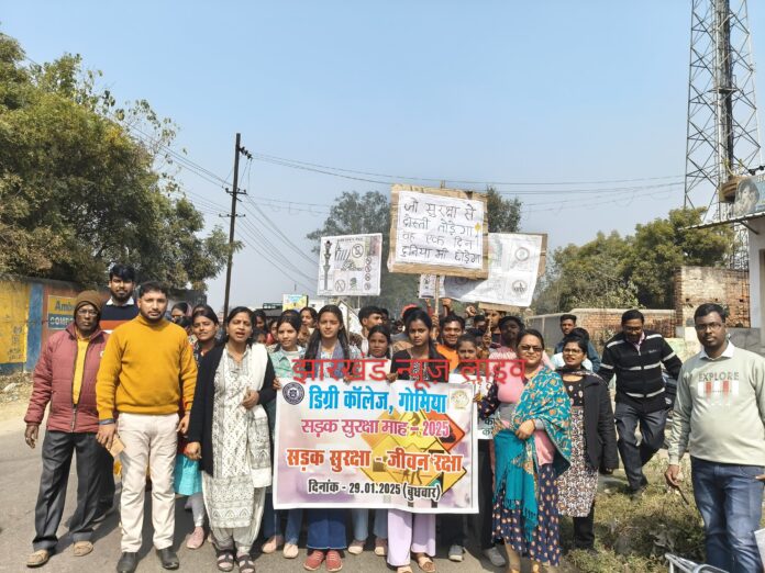 गोमिया डिग्री कॉलेज ने सड़क सुरक्षा अभियान के तहत निकाली जागरूकता रैली