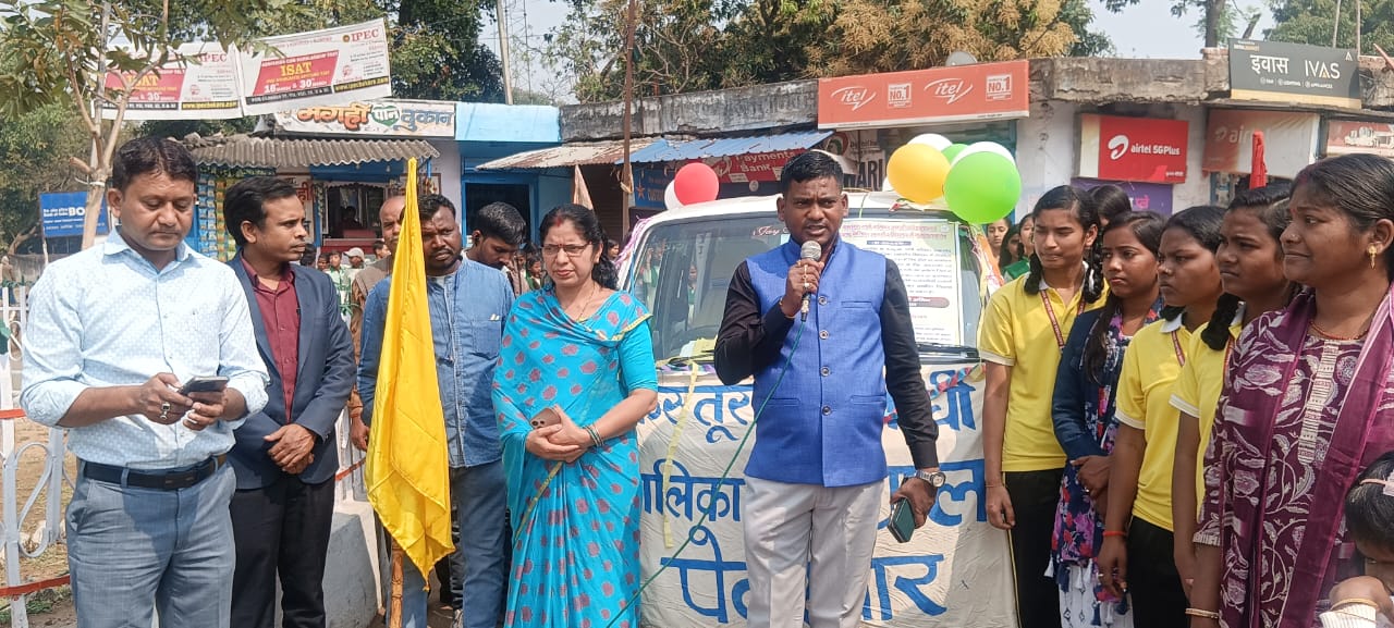 प्रचार वाहन को अनुमंडल पदाधिकारी मुकेश मछुआ, पेटरवार बीडीओ, पेटरवार अंचल पदाधिकारी अशोक राम, प्रखंड कार्यालय पदाधिकारी इकबाल अतहर वारसी, तेनुघाट पंचायत मुखिया नीलम श्रीवास्तव, उलगड्डा मुखिया अरविंद कुमार मुर्मू, घरवाटांड़ मुखिया रामचंद्र यादव, कस्तूरबा विद्यालय की वार्डन पूनम कुमारी और मालती देवी ने संयुक्त रूप से झंडा दिखाकर रवाना किया.