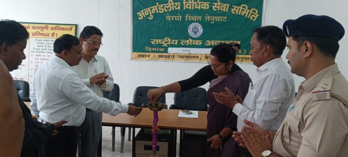 माननीय सर्वोच्च न्यायालय, झारखंड उच्च न्यायालय एवं प्रधान जिला जज सह सत्र न्यायाधीश बोकारो अनिल कुमार मिश्रा के निर्देशानुसार शनिवार, 28 सितंबर को तेनुघाट व्यवहार न्यायालय में राष्ट्रीय लोक अदालत का आयोजन किया गया। इस लोक अदालत में कुल 80,401 मामलों का निष्पादन किया गया और लगभग दो करोड़ अड़तालीस लाख रुपये की समझौता राशि वसूल की गई।