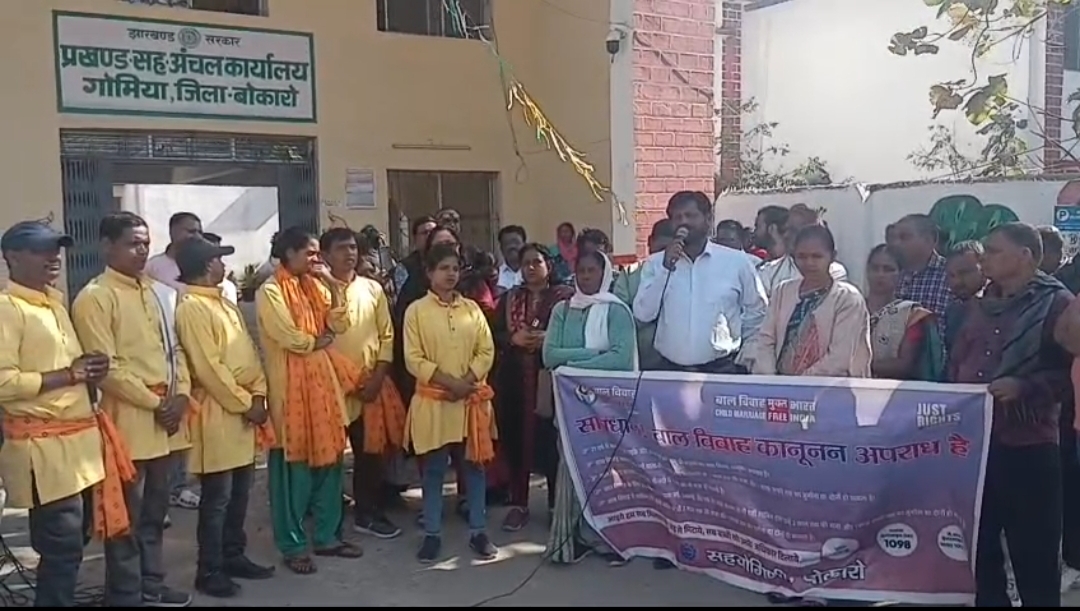 गोमिया प्रखंड कार्यालय परिसर में बाल विवाह मुक्त अभियान के तहत जागरूकता कार्यक्रम का आयोजन किया गया। इस अवसर पर नुक्कड़ नाटक के माध्यम से लोगों को बाल विवाह के दुष्परिणामों एवं उससे जुड़े कानूनी प्रावधानों की जानकारी दी गई। कलाकारों ने प्रभावशाली प्रस्तुति देकर बालिकाओं को शिक्षा देने, 18 वर्ष की आयु पूर्ण होने के बाद ही विवाह करने तथा बाल विवाह कराने वालों के विरुद्ध कानूनी कार्रवाई किए जाने का संदेश दिया।