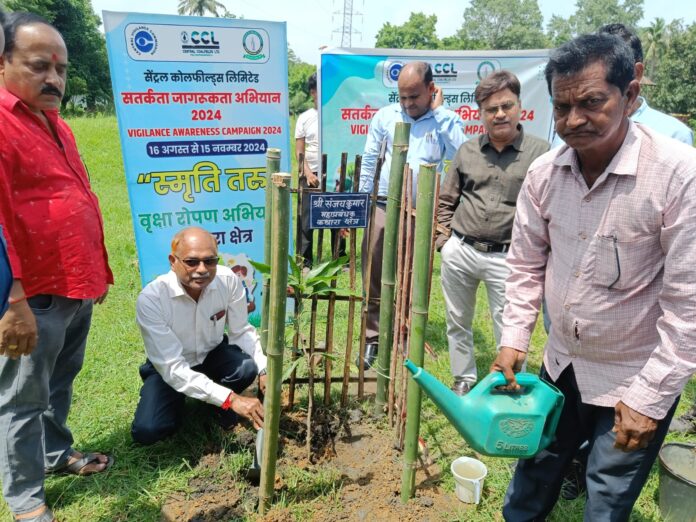 बेरमो: सतर्कता जागरूकता अभियान के तहत कथारा में वृक्षारोपण कार्यक्रम