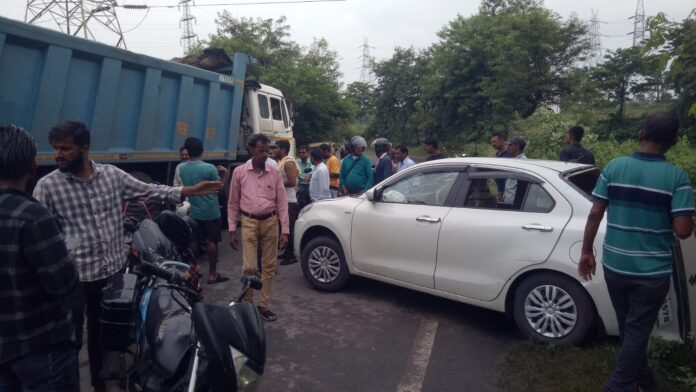 बेरमो: हाइवा ट्रक और स्विफ्ट कार में जोरदार टक्कर, एक युवक की मौत, चार घायल