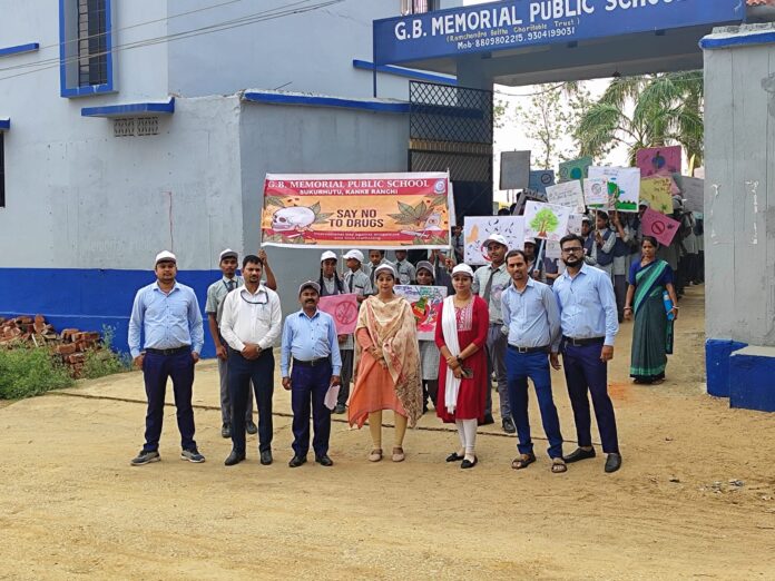 रांची: नशा मुक्ति व जागरुकता को लेकर जीबी मेमोरियल पब्लिक स्कूल ने निकाला प्रभातफेरी