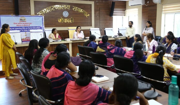 बोकारो समाहरणालय स्थित सभागार में सोमवार को उपायुक्त विजया जाधव की अध्यक्षता में लेडी सुपरवाइजर और मास्टर ट्रेनर्स (आंगनबाड़ी सेविकाओं) के लिए शिक्षण-अधिगम सामग्री पर विशेष प्रशिक्षण सत्र का आयोजन किया गया। इस दौरान जिला समाज कल्याण पदाधिकारी सुमन गुप्ता सहित अन्य अधिकारी उपस्थित रहे।